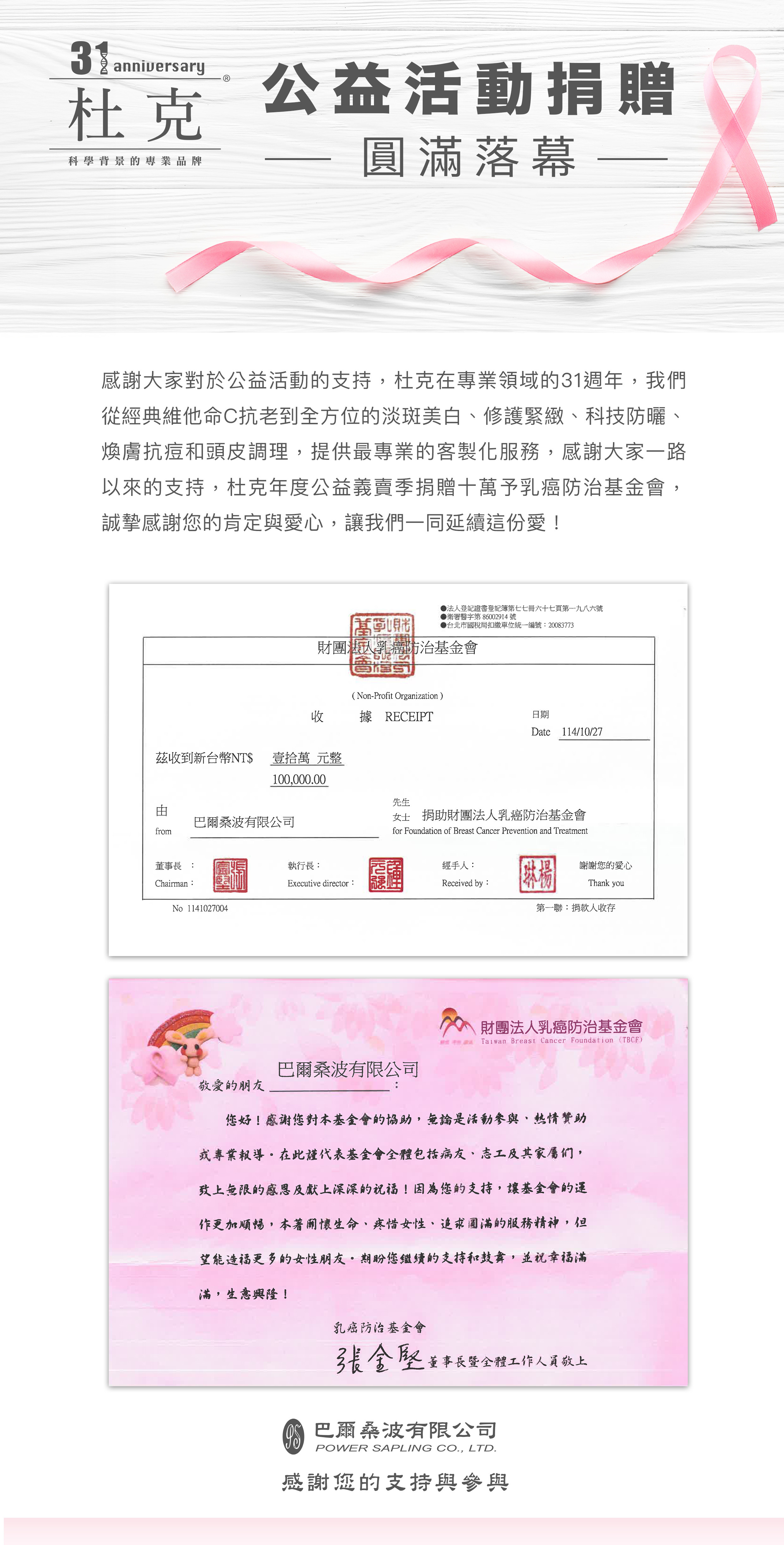 Home / 部落格列表 / 杜克2025公益活動捐贈圓滿落幕 X 乳癌防治基金會