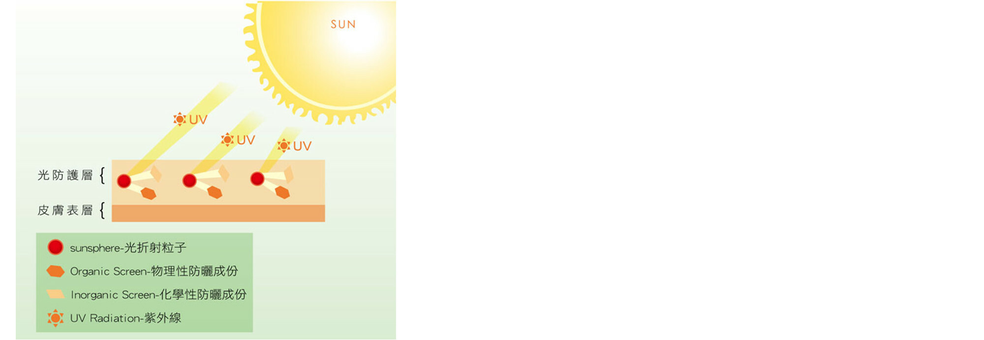 光折射粒子為防曬成分革命性的配方科技,如鏡子般的空心球體技術能折射紫外線光,延長防曬劑效能、減少補擦次數,增加肌膚防禦能力。與Fernblock®相輔相成,增加肌膚光保護作用,提供更完整的高效防護,質地清爽不黏膩,不會造成肌膚負擔。